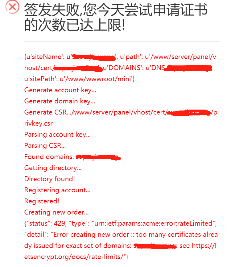 今天在給一個(gè)挪威vps的客戶申請(qǐng)證書的時(shí)候,出現(xiàn)證書申請(qǐng)過多的問題