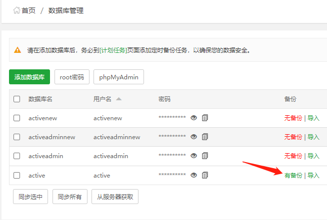 1.如果寶塔數(shù)據(jù)庫(kù)有備份如下圖,可以先恢復(fù)到備份那天的數(shù)據(jù),做一個(gè)應(yīng)急處理,讓大部分用戶可以繼續(xù)使用