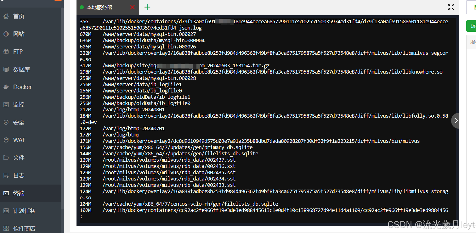 系統(tǒng)日志(如/var/log目錄下的文件)也可能占用大量空間。雖然寶塔面板沒(méi)有直接提供清理系統(tǒng)日志的功能,但您可以通過(guò)SSH連接到服務(wù)器,使用logrotate工具或手動(dòng)刪除舊日志文件來(lái)管理。